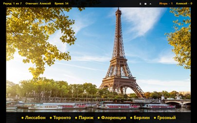 Это викторина о 50 самых известных городах мира. Угадайте город по фотографии! Играйте сами или пригласите друзей. В викторину может играть до пяти человек.