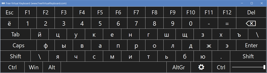 Бесплатная виртуальная клавиатура работает на любом устройстве под управлением Windows с сенсорным экраном (Ultra-Mobile PC, Tablet PC и Panel PC). Вы можете использовать мышь, сенсорный экран, ручку или любое другое указывающее устройство для набора текста. Эта удобная клавиатура имеет достаточно большие кнопки, чтобы набирать текст пальцами.