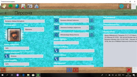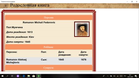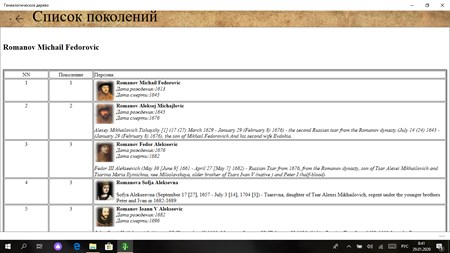 Приложение создано для хранения исторического наследия семьи. Хранит список людей и их родственные связи, фотографии, копии документов и видеоматериалы. Рисует дерева на графическом и гипертекстовом холсте. Сохраняет фотографии и видео материалы. Показывает календарь семейных событий , что даёт возможность наглядно видеть дни важных семейных событий.