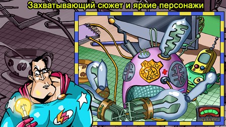 Особенности игры: + Захватывающий сюжет и яркие персонажи! Почувствуйте себя супергероем. + Взрывная смесь из комиксов, поиска предметов, остроумных задач и юмора на локациях с авторскими яркими рисунками. + Симпатичные остороумные персонажи. + Атмосферная музыка.