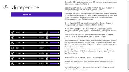 приложение создано для ознакомления с певцом Дмитрием Колдуном и его творчеством Дима Колдун появился на свет 11 июня 1985 года в Минске. Вроде ничто не предвещало долговязому и худенькому мальчишке музыкальную карьеру. Он одинаково ровно относился к предметам в школе, искал себя во многом и легко находил. Увлечения Димы были разнообразны и порой несколько необычны. Например, однажды написал текст со словами, начинающимися на одну и ту же букву, и его напечатали в еженедельнике «Аргументы и Факты. Беларусь». Но этот факт никак не повлиял на будущую профессию Дмитрия. Акулой пера он не стал. Не пополнил и ряды работников на заводе полимеров, несмотря на то, что высшее образование в Белорусском государственном университете получил именно на химическом факультете. Но его старший брат Георгий стал своеобразным перстом судьбы. Поставив Диму перед выбором: «Играй на гитаре или иди мыть пол», он практически определил его дальнейший путь. Гитара стала верной «подружкой» младшего Колдуна. Оказалось, что у него есть музыкальный слух и неплохой голос. Результаты не заставили себя долго ждать. Дима собрал инструментальную группу и регулярно проводил репетиции в школьном подвале и гаражах, распугивая жителей окрестных домов гитарным ревом. А еще стал завсегдатаем различных молодежных певческих конкурсов, где никогда не оставался без призовых мест и подарков.