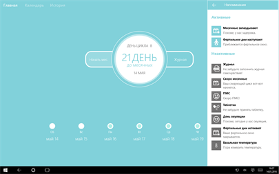 * Предсказывать, когда начнется менструация и овуляция * Запоминать историю ваших циклов * Отслеживать симптомы: базальную температуру, настроение, болезненные ощущения и др. * Сигнализировать о задержке * Сообщать о том, что приближаются месячные, фертильное окно или другие событиях цикла * Напоминать принять таблетку или отметить симптомы * Оказывать моральную поддержку и шутить (ну, она старается)