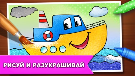 Наша коллекция детских игр для рисования – это нескончаемое удовольствие. Дети учатся соединять точки и рисовать (в том числе светящимися красками) в раскраска для детей. Маленькие всезнайки получат удовольствие от интересных и безобидных игр для раскрашивания и рисования, которые учат цифрам, фигурам, помогают определять картинки и делать многое другое. Интерактивная книжка-раскраска и pаскраски по номерам в одном бесплатном приложении! Благодаря рисованию и раскрашиванию, детские приложения для рисования позволяют детям выражать эмоции и быть уверенными в своих силах. Игры для рисования предусматривают увлекательные обучающие режимы: «Учись рисовать» – дети поступательно учатся рисовать. «Авторисование» – упрощенный режим для маленьких детей, который позволяет наблюдать за рисованием и раскрашиванием. «Соедини и разрисуй» – соединение точек, после чего картинка раскрашивается автоматически. «Соедини точки» – рисование картинок, когда цифры соединяются между собой линиями. «Рисование по памяти» – линия появляется и быстро исчезает. Ребенку нужно нарисовать ее по памяти! «Светящиеся краски» – игра со светящимися красками! Замечательная приложение для рисования содержит множество несложных красивых картинок для рисования и раскрашивания. Наклейки, мелки и светящиеся ручки займут любого ребенка на долгое время. Без рекламы, покупок из приложения и платного доступа, которые могут отвлекать детей. Загружайте приложения, чтобы дать ребенку возможность развивать свои способности при помощи этой увлекательной игры-раскраски.