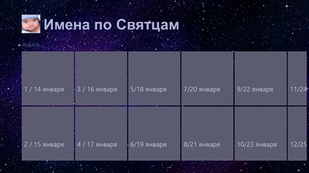 Приложение поможет выбрать имя Вашему ребенку. Выбираете месяц, выбираете день - получаете список имен святых, почитаемых в этот день. Дополнительно можете прочитать информацию об этом дне в православной истории. Есть определенные правила, согласно которым следует выбирать имя по святцам. Правильнее будет рассматривать не сам день появления малыша на свет, а восьмой по счету день с момента рождения. Выберите от даты рождения ребенка или восьмой, или сороковой день (так как на сороковой день крещение на Руси тоже допускалось). Из предлагаемого списка имеет смысл выбирать имена, наиболее созвучные с отчеством и фамилией малыша. Выбирая имя, помните, что оно наложит огромный след на его судьбу и характер. Прежде чем окончательно определиться с выбором имени, изучите его значение по всем имеющимся словарям, выберите подходящее имя ребенка по дате рождения. В дальнейшем тот календарный день, на который пришелся выбор имени новорожденного, считается днем его ангела или днем именин. В этот день принято посещать храм и молиться за здравие выбранному святому.