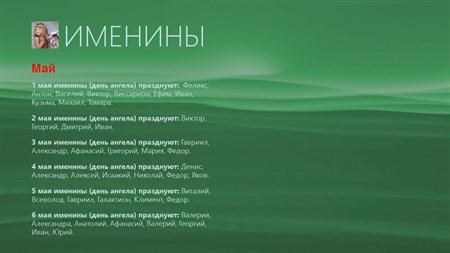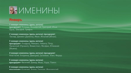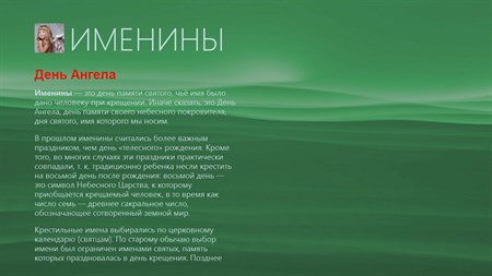 Именины — это день памяти святого, чьё имя было дано человеку при крещении. Иначе сказать, это День Ангела, день памяти своего небесного покровителя, дня святого, имя которого мы носим. Все даты и имена празднования именин в Приложении приведены в полном соответствии с православными святцами, то есть списком чтимых православной церковью святых. Имя святого выбирается по церковному календарю, и в течении православного обряда он получает свое новое имя, в честь памяти святого, и празднование в его честь и называется: Именины.