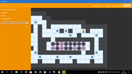 Soko-Ban - классическая логическая игра-головоломка, в которой игрок передвигает ящики по лабиринту, показанному в виде плана, с целью поставить все ящики на заданные конечные позиции. Только один ящик может быть передвинут за раз, причём герой игры - "кладовщик" - может только толкать ящики, но не тянуть их.