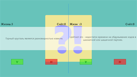 Утверждений на разные темы, угадайте, правда это или ложь. С последующими обновлениями вопросов и режимов игры станет больше.