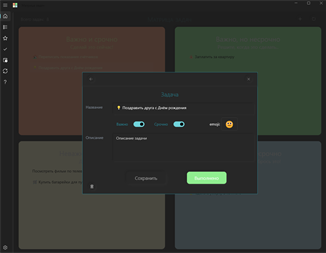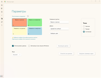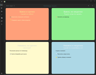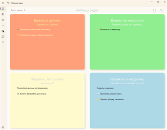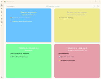 Здравствуйте! Мы рады представить вам наше новое приложение – «Матрица задач». Матрица задач (матрица Эйзенхауэра) — это один из самых популярных инструментов тайм-менеджмента. Считается, что основоположником этой матрицы является президент США Дуайт Дэвид Эйзенхауэр (1953 - 1961 гг). Матрица задач помогает управлять своими делами, распределив свои задачи на 4 группы по приоритетам в соответствии с двумя признаками задачи: важность и срочность. Мы попытались реализовать этот инструмент тайм-менеджмента в виде приложения для Windows.