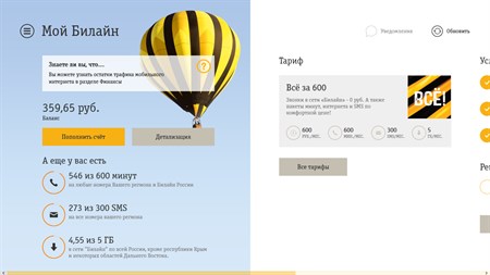 Приложение «Мой Билайн» — лучшее приложение для управления связью Билайн для Windows! Все функции личного кабинета абонента «Билайн» на вашем устройстве. Проверять баланс, следить за остатками включенного интернет-трафика, минут и смс, смотреть детализацию расходов, пополнять счет, подключать и отключать услуги, управлять тарифом, найти ближайший офис на карте – все это теперь можно сделать одним движением прямо в приложении.