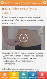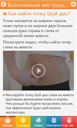 Используя приложение, Вы сразу сможете достичь: → Облегчение маточные кровотечений. → Облегчение болезненных менструаций. → Облегчение головных болей. → Снижение давления. → Облегчение тошноты и рвоты. → Облегчение боли сердца. → Облегчение плаксивости. → Улучшение сна. → Уменьшение утомляемости. → Облегчение депрессии.