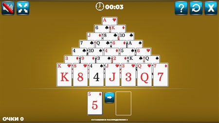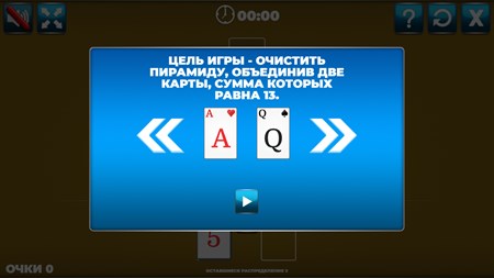 Цель игры — разобрать пирамиду, подбирая карты так, чтобы в сумме пара стоила 13 очков.