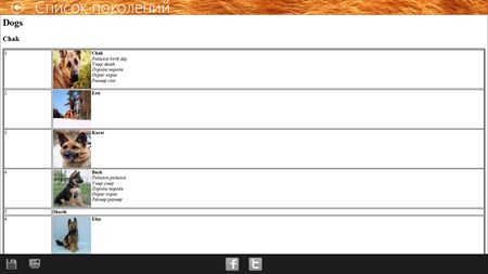 Программа предназначена для создания родословной животных. Хранит список животных, их фотографии и видеофильмов. Показывает календарь дней рождения питомцев. Функции программы: - Составление списка животных; - Строительство родословной животного (2D, 3D); - Строительство родословной ветви животного (2D, 3D); - Составление списка поколений; - Составление общего и персонального фотоальбома; - Составление общего и персонального видео архива; - Печать отчетов и фотографий с разделением на страницы; - Сохранение данных в архиве ZIP; - Импорт/экспорт в архив GEDCOM.