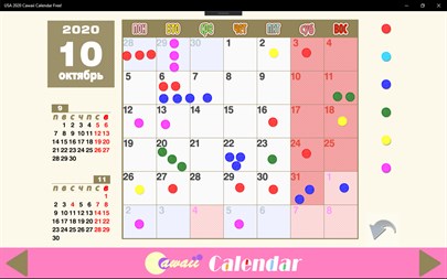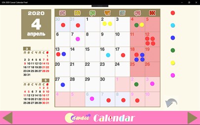 «Cawaii календарь» призывает вас выполнить ваши задачи. Бесплатно Вставьте 6 цветов цвета марок, ежедневно визуализация достижений, например, работы, учебы и профессиональной подготовки. ❤️❤️❤️ Простой и красивый перспективных ежемесячный календарь 2023 год. Вы можете проверить текущую дату и ваши события в быстрый взгляд. Наслаждайтесь ввода вашей встречи, события или достижения, просто перетащив цвет марок в календаре. Использование цвета марок является все до вас! Это супер интуитивно. Не входы клавиатуры. Ничего не узнать.