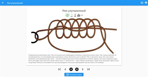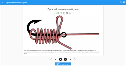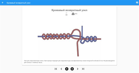 "Рыбацкие узлы" - это программа, показывающая как надо вязать узлы. Среди множества узлов рыбаку необходимо выбрать и использовать правильный. В каждом случае - он свой. Как сильно конкретный узел ослабляет леску? Какие узлы использовать для тонких рыболовных лесок, а какие - для толстых? Какие узлы вязать на плетенках? В справочнике собраны узлы для: связывания двух лесок; привязывания поводков; узлы для привязывания больших и малых крючков, воблеров, блесен, вертлюжков; связывания шнура и лески - и другие узлы Для каждого узла подробно описан способ завязывания. 3D-схема готового узла и иллюстрации всех этапов завязывания. Подробно описаны свойства узлов. Дана оценка снижения прочности для каждого узла. Для каждого узла приведены рекомендации по видам рыболовных лесок. Приложение может работать без интернета, все узлы загружаются при установке. Отборные узлы, простые и ясные трехмерные схемы - это и есть приложение "Рыбацкие узлы". Вот несколько причин, чтобы установить на свое устройство приложение "Рыбацкие узлы": ✔ максимальное количество используемых рыбаками узлов; ✔ графика оттестирована на понятность; ✔ приложение может работать без интернет-соединения; ✔ удобный интерфейс - это не страница сайта с кучей ненужной информации по краям; ✔ узлы четко распределены по категориям; ✔ по каждому узлу указано ослабление в процентах от предельной нагрузки лески; ✔ оно все время обновляется, уточняется и увеличивается;
