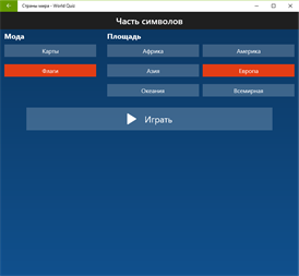 Выберите, какую часть мира, чтобы играть, и режим игры: флаги или карты.
