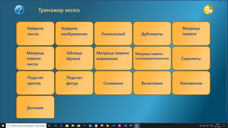 Игра "Тренажер мозга" стала полностью бесплатной, все тренажёры бесплатны и не требуют подписок. Игра "Тренажер мозга" это комплекс увлекательных и интересных тренажёров для развития памяти, внимания, концентрации и мышления: "уникальный", "дубликаты", "найдите число", "найдите изображение", "матрица памяти", "матрица памяти: числа", "таблица Шульте", "матрица памяти: последовательности", "матрица памяти: изменения", самолеты", "подсчет цветов", "подсчет фигур", "сложение", "вычитание", "умножение", "деление". Для развития памяти, внимания, концентрации и мышления в игре предусмотрено два режима: режим тренировки и режим соревнований. В режиме тренировки игра может работать без интернет соединения. В этом режиме можно настраивать сложность и продолжительность упражнения, ведется статистика Ваших тренировок. В режиме соревнований Вы соревнуетесь с другими участниками по всем видам тренажеров.