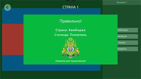 ДО НАЧАЛА МАРТА ИГРА ДОСТУПНА СО СКИДКОЙ! *** В демо версии вам доступны 3 попытки в режиме "Угадать по гербу" и "Угадать по столице". Так же нет возможности выбрать уровни сложности. В режиме "Угадать по флагу" нет ограничений на количество попыток, но доступен только один уровень сложности ***