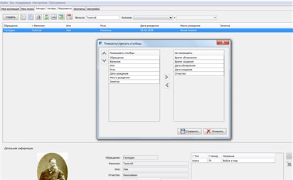 Все виды таблиц в программе могут быть индивидуально настроены. Пользователь определяет, какие столбцы должны быть отображены, их ширину, вид сортировки и критерии фильтра (критерии поиска), которые должны быть использованы при просмотре.