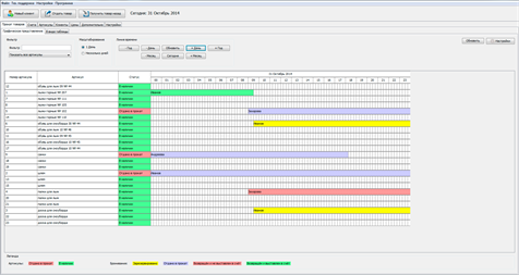 В программе возможно определение любых периодов аренды: час, сутки, неделя. Возможен почасовой просмотр одного дня, а также подневный просмотр нескольких дней. Ценовые категории в программе определяются пользователем. Для каждой ценовой категории можно задать цену проказа в час, в день и в неделю.