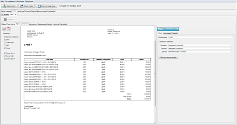Программа предоставляет возможным создание своих собственных документов. При этом, оформление документов может быть полностью определено пользователем, а также использованы готовые шаблоны, имеющиеся в программе. Примечательно, что в программе возможно лёгкое создание счетов с колонтитулом, логотипом и другими пользовательскими элементами настройки. При создании счёта Вы можете выбрать, по какой цене выставить прокат. Помимо позиций, сданных в прокат, Вы можете добавлять дополнительные позиции в счёт. Счета могут поддерживать несколько ставок НДС. Для удобства имеется программный ассистент, который поможет Вам настроить внешний вид счёта и задать НДС по умолчанию.
