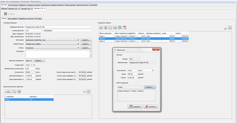 Не менее полезной функцией является легкое изменение количества товаров на складе. Для этого нужно создать новую поставку с данными поставщика и необходимыми товарами. Товары будут автоматически добавлены на склад, с указанием информации об их непосредственном размещении. Все это также может быть выполнено путем прямого добавления отдельных товаров, изменением или удалением имеющихся в диалоге со складскими запасами. Все значения параметров пользователя при этом будут описаны в журнале изменения складских запасов. Для поставок могут быть определены дополнительные свойства, такие как внешние и внутренние номера, статусы, поставщики, денежные счета, платежные статусы и способы оплаты.