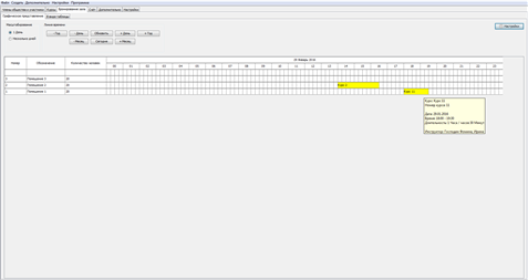 Каждый курс состоится в зале. Количество и свойства залов могут быть определены в настройках. Программа обеспечивает графическое отображение залов.