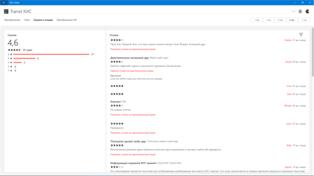 Изучайте детально оценки и отзывы, чтобы узнать мнение клиентов о ваших приложениях.