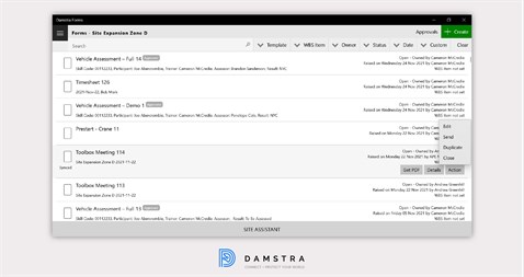 With the Damstra Forms app, data can be captured anywhere and anytime, even when working offline without internet connectivity! Integration with the Enterprise Protection Platform slashes data entry time by pre-populating many form fields with the correct information. It also ensures completed form data is automatically added to employee, safety, and asset records. Whether you’re in the field or the office, you always have easy access to real-time information from one source of truth.