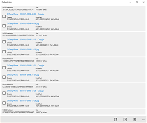 Pick a folder and the app starts looking for duplicated files. When it finds any it will show them grouped by their checksum. Choose auto-select or manually select the duplicates you want to delete.