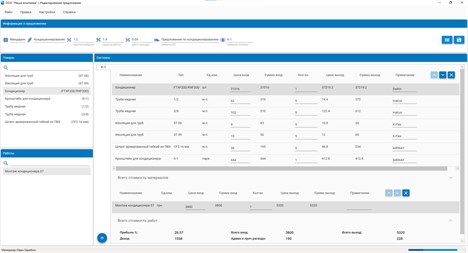 Приложение позволяет создавать коммерческие предложения для ваших клиентов на лету с последующим экспортом предложения в формат MS Excel. Предложение после экспорта оформлено в удобном формате, имеет Итоговый лист с перечислением всех разделов (систем) и отдельно спецификаций с перечнем материалов и услуг. Ценовая политика стоимости оборудования, материалов и работ сразу представлена в виде ссылок на другие листы и прописанных формул общей суммы предложения и других показателей. Также автоматически добавлены скрытые колонки, с ценами входа, которые не должен видеть заказчик, для экономической оценки предложения и понимания доходности предложения (например для оценки и согласования с руководителем). Идеально подходит для небольших строительных компаний, или любых других предприятий которые продают товары, материалы и оказывают услуги. Бесплатная пробная версия в течении 7-ми дней с момента установки не чем не ограничивает функциональность приложения, однако после окончания пробного периода не будет возможности добавлять, составлять и редактировать предложения.