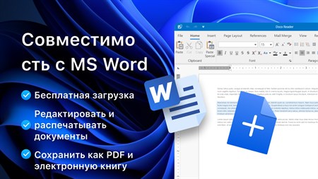 Docx Reader позволяет создавать и редактировать документы Word в форматах DOCX и DOC. Он совместим с Microsoft Word для обработки файлов .docx и .doc.