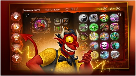 Особенности - Игра доступна на 13 языках: английском, немецком, французском, испанском, итальянском, голландском, русском, японском, китайском, корейском, португальском, шведском и польском - Игровые с дьявольскими монетами! - Получай новые элементы из огня, земли, воды и воздуха, чтобы сотворить свой мир! - Интуитивный геймплей в один клик позволяет сконцентрироваться на умной и созидательной игре! - Сотни интересных, смешных и мудрых цитат и пословиц