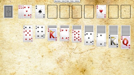 Double Klondike plays exactly like Klondike, except for using two decks and having nine tableaus instead of seven. But because alot more moves are possible, its much easier to win at this solitaire. Build up the foundations in suit from Ace to King. Build tableaus downwards by alternating color. Free tableau spaces can be fill only by kings. Click the deck to deal three cards to the waste, the top of which is playable. Click the deck to move all cards from the waste back to the deck.