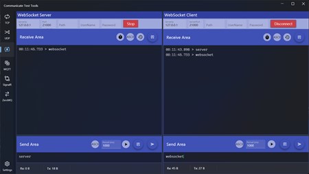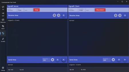 This application is used for communication debugging, including TCP, UDP, WerbSocket, MQTT, SignalR, ZeroMQ, Http Mock, each communication method includes a server and a client, you can monitor both service and client messages in one interface.