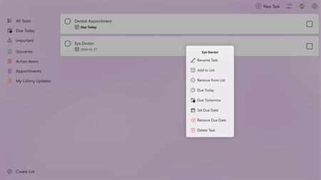 EZ Tasks is the easy way to create task and to do lists. Organize your life by creating tasks with due dates, checking them off when you are complete. Organize your tasks into easy to use color coded to do lists. Great for making grocery lists, keeping track of chores around the house, or remembering important appointments. If you use an Ape Apps Account, EZ Tasks will sync your task lists across your different devices. Give it a try!