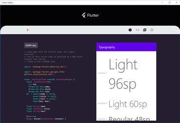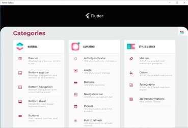 More information on Flutter support for building Windows apps can be found at https://flutter.dev/desktop. More information on the Gallery app, as well as the source code, can be found at https://gallery.flutter.dev.