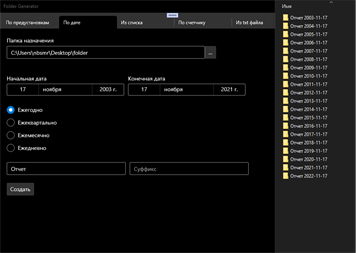 Создание папок по промежутку дат.
