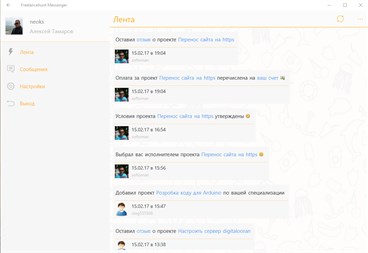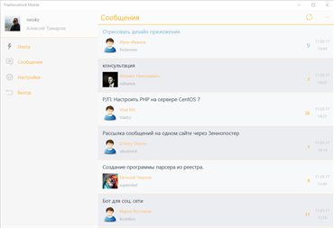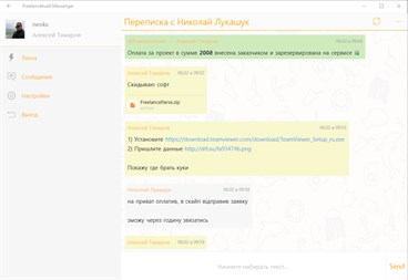 Простой мессенджер для обмена личными сообщения на сайте freelancehunt.com