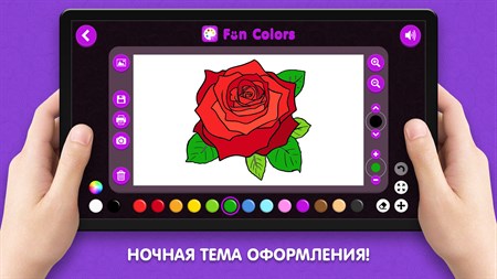 ▶ Загрузка собственных раскрасок ▶ Простое управление игры ▶ Ночная тема для комфорта глаз ▶ Режим для рисования и раскрашивания ▶ Раскраски машины, животные, цветы и другие ▶ Загрузка фотографий в игру ▶ Распечатка рисунков из игры ▶ Сохранение рисунков на устройство ▶ Настройка размера и типа кисти ▶ Приближение/отдаление холста ▶ Отмена последнего действия