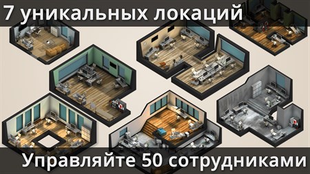 • Начните работать самостоятельно в небольшом офисе и поднимите свой игровой бизнес до 7 зданий в собственности и 50 работников в штате, одновременно поручая создание проектов трем независимым командам разработчиков игр!
