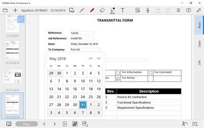 Feature Overview: • Use the included form and paper templates, import your existing forms or create new ones • Maintain a diary with pages automatically timestamped • Using the spreadsheet component enter data, automatically calculate results, and perform analysis • Capture video and audio quickly with voice memos. Easily play within your note pages • Jump to notes taken on a specific day using the calendar view • Search for target templates or content using tags, enabling to-do lists and much more • Customize search conditions • Write, sketch and draw notes with a variety of pens, paper layouts, and graphics. Includes calligraphy pens and special inks from a vast color palette • Take photographs using the camera or import existing images straight into your documents • A vector graphics system (as used in CAD applications) means you can fine tune and edit anything you add • Move, scale and rotate anything on your page without losing quality • Import PDF documents as pages in a note, annotate and then save as a new PDF file • Import multiple PDF documents on the same page for side by side information analysis • Easily capture text from a keyboard • Enhanced text formatting options include options to add bullets and increase & decrease indents • Pre-defined basic shapes library for quick use • Include web page links and visualizations within a note • Smart cropping tool for photo editing • Quickly access frequently used tools and commands, customized for different business scenarios