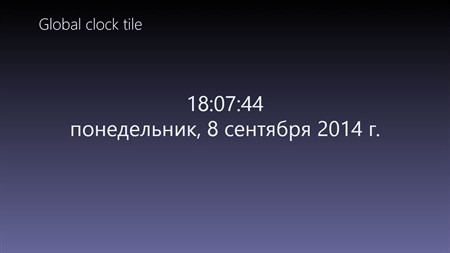 Приложение отображает время, день недели и дату в плитке на стартовом экране. Пожалуйста, убедитесь, что вы открываете приложение первой и позволить ему заблокировать экран для обновления плитки работать. Затем, вы можете прикрепить его к вашему начальному экрану.