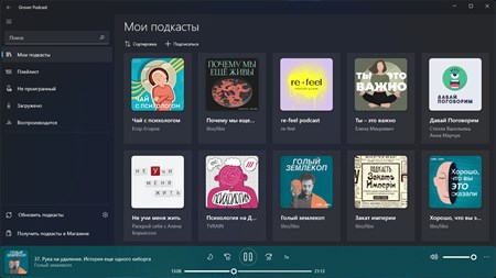 Grover Podcast является лучшим приложением для управления Вашими подкастами на Windows.
