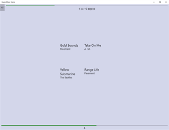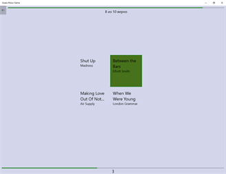 Угадайте музыку из вашей фонотеки! У Вас есть 7 секунд и 4 варианта ответа: слушайте и выбирайте. Продолжительность игры может быть 10, 20 или 50 раундов. За правильные ответы вы получаете очки (до 7 максимум). Все ваши достижения сохраняются и их можно посмотреть на страничке результатов. Попробуйте набрать как можно больше очков! Удачи. Помните, что для игры необходимо наличие музыкальных треков на вашем устройстве в папке Музыка или на флэш-карте. Необходимый минимум 40 треков.