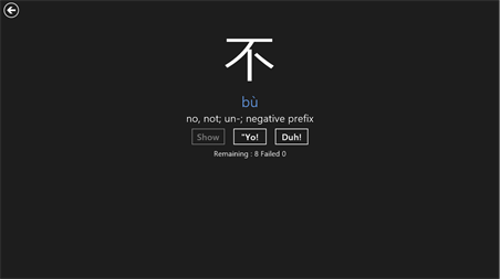 Simple Hanzi (Chinese characters) flash program. Lite edition (250 characters.) A full, paid for, version exists called just "HanziFlash" with 2999 characters