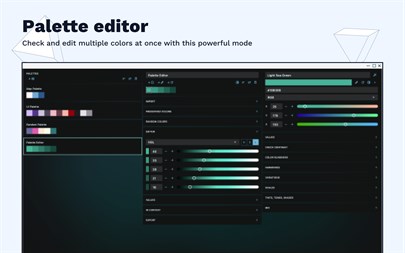 - Create, edit, and name color palettes, and organize them by sorting and rearranging them - Fine-tune colors with an intuitive editor - Sort palette colors based on hue, saturation, brightness, etc. - Visualize the perceived lightness of colors - Pick colors from your screen - Generate tints, shades, variations, mixes, harmonies, and scales for colors - Check the contrast of colors for accessibility issues and visualize colors for colorblind people - Access predefined color schemes for data visualization and UI color systems - Import colors from various sources including Adobe products, Procreate, PaintShop Pro, Sketch, GIMP, Allaire, Macromedia, and more - Export to several formats: text (CSS, Javascript, Android, Swift, .NET), file, and images. - Generate random palettes based on different rules - Test colors "in context" for maps, charts, UI, etc. - Modify palette colors in bulk with the editor - Extract colors from images - Work with advanced color spaces such as HSL, HSB, LAB, XYZ, and CMYK - Name each color or let the app suggest a name for ease of exporting.