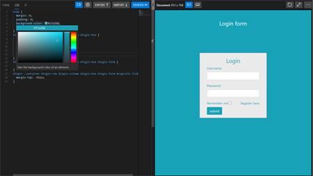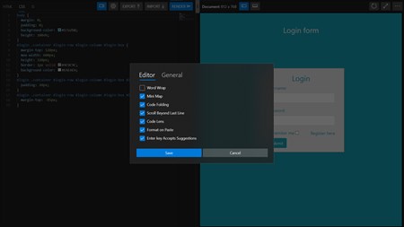 Features -> Separate Editor for HTML, CSS and JS Source code with Mini map and Code Folding support -> Interactive console supports console logs such as info, warn, error and log functions -> Log Viewer to view individual logs in prettified JSON format or as text and to copy as prettified JSON -> Console logs clear, preserve and "copy all" logs option -> Window object logs are handled and formatted as JSON -> Hide / Show / Resize Console option -> Hide / Show / Resize Editor option -> Hide / Show / Resize Output Pane option -> Resolution of the webpage is displayed and updated on resize for responsive development -> Editor Configuration such as word wrap, mini map, Code Folding etc., are supported -> Load a file from local disk and continue development -> Export the generated HTML file -> window.alert native support