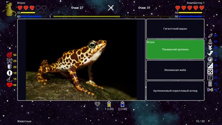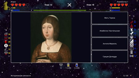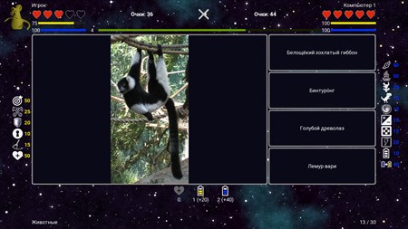 Викторина содержит множество интересных фактов и изображений. Используя подсказки и антиподсказки, вы можете сформировать свою стратегию игры: помогать подсказками себе или мешать антиподсказками соперникам.