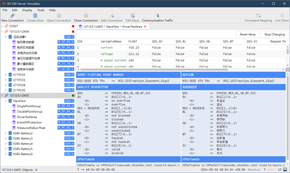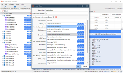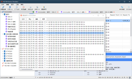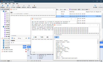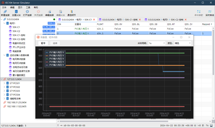 - Quickly create multiple connections and multiple slave devices IEC104 Server Simulator supports simulating multiple slave stations/servers at the same time, or simulating multiple stations (public addresses) in a single connection; and supports custom APCI parameters. - Support Rich Control Commands Supports single point command, double point command, set value command, automatic clock synchronization, regular support for general call command, count call command, etc. - Full Support for IEC 104/101 Protocol Supports all ASDU TypeIDs, including process information in the monitoring direction, process information in the control direction, system commands in the monitoring direction, system commands in the control direction, etc. - Common Tool Built-in common tools, checksum calculation tools, string encoding and decoding tools, and IEC104 message parser. - Monitor Link Data Using the IEC104 Server Simulator, you can monitor detailed communication data on the Ethernet network to help you quickly debug and troubleshoot problems. - Real-time Drawing Draw real-time curves for any number of measured values (normalized values, scaled values, short floating point numbers) and cumulative quantities to monitor the changing trends of the data.