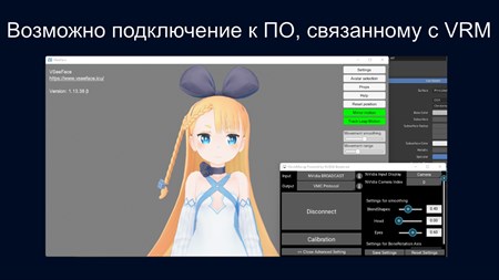 Устройство также может взаимодействовать с 3D-программами, связанными с VRM, такими как VSeeFace, если установить настройки вывода на "VMC Protocol" или "iFacialMocap".